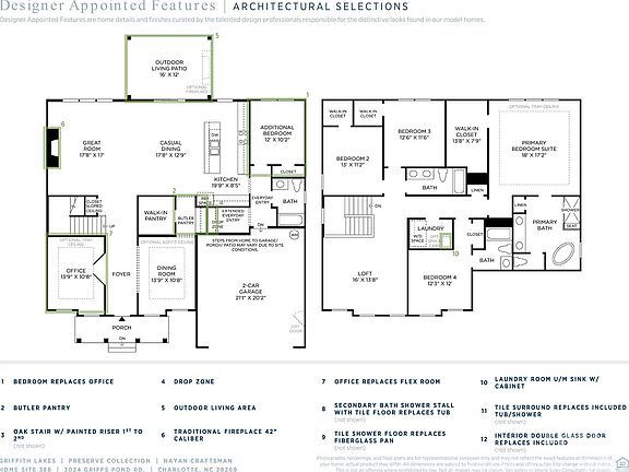 Experience Luxury Living in The Nayan — Where Elegance Meets Everyday Comfort Step into The Nayan, a beautifully crafted two-story home in Griffith Lakes, Charlotte’s premier low-maintenance community surrounded by natural beauty and resort-style amenities. With 5 bedrooms, 4 bathrooms, a loft, formal dining room, and a office space, this home is designed for both style and flexibility. The private backyard adds the perfect outdoor escape. The impressive foyer sets the tone, opening to a gracious formal dining room and a office space—ideal for entertaining, hosting guests, or creating the perfect work-from-home setup. An extended everyday entry makes daily routines effortless and offers the perfect spot to customize your dream drop zone. You will find a full bathroom and bedroom on the main level, perfect for guests. At the heart of the home, the chef-inspired kitchen features a generous island, elegant quartz countertops, a gas stove, and upgraded luxury vinyl plank flooring throughout the main level. It’s a space designed to elevate both cooking and gathering. Upstairs, the primary suite becomes your own serene retreat with an oversized walk-in closet and a freestanding soaking tub framed by a large picture window—a luxurious sanctuary for unwinding. A spacious loft provides endless possibilities, from a second living area to a playroom or office. Each secondary bedroom boasts its own walk-in closet, ensuring comfort and storage for everyone. Life at Griffith Lakes is unmatched. Future resort-style amenities are projected for completion in 2026, including a clubhouse, fitness center, outdoor pool with cabanas, hot tub, pickleball & tennis courts, bocce ball, grilling areas, and cozy firepits. This community is crafted for elevated living and endless enjoyment. Enjoy access to a 17-acre lake and over 5 miles of scenic walking trails, all just minutes from Huntersville, Concord, and major highways I-485, I-77, and I-85. Discover the perfect blend of convenience, tranquility, and elevated living in one of Charlotte’s most sought-after communities. The Nayan is ready to welcome you home.