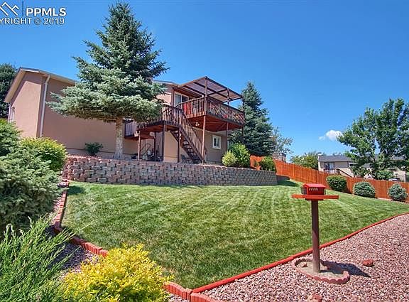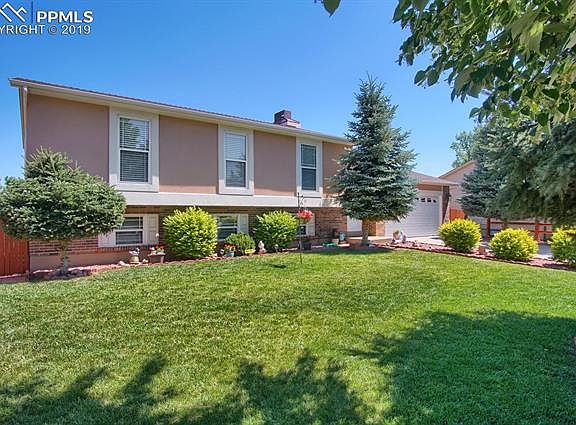 Welcome home to this beautiful bi-level in Deliverance subdivision. This wonderful home has stand out curb appeal with luscious front and rear lawns, mature trees, outstanding mountain views and an elevated covered deck. This landscaping will not disappoint!Immaculately kept, this stucco and brick home boasts 4 bedrooms 2 bathrooms, a living room a family room with fireplace and an oversized 2 car garage with plenty of storage. Close to Cottonwood creek trail, park and golf course. Minutes from shopping, schools, restaurants and easy access to Woodman, Powers corridor and i25.