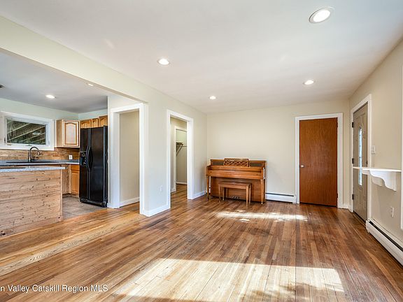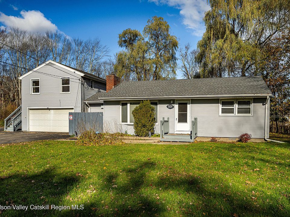 Lovely ranch located in the desirable town of Stone Ridge close to Stone Ridge Orchard. The main house has two bedrooms and one full bathroom. Beautiful living room with a wood burning fireplace. Hard wood floors throughout, extremely sunny and bright. The kitchen and dining room have a sliding door that open onto the patio, ideal for entertaining family and friends. The laundry room completes the space. There is an accessory apartment over the garage, with a separate entrance and it has been nicely updated with new flooring, updated appliances and replacement windows. This is the ideal property for an investor who wishes to rent out both the main house and apartment or if a homeowner is looking for additional income and wants to rent the accessory apartment. The apartment would also make for an excellent mother-in-law space, or home office. There is a two-car garage. Close to shopping. Stone Ridge Orchard and fantastic restaurants.