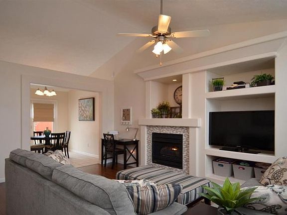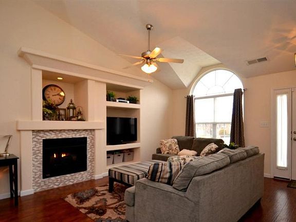 You're going to fall in love with this one! Super cute, move-in ready 3 bedroom, 2 bathroom ranch with gleaming laminate hardwood flooring throughout the foyer, great room, hallway and bedrooms! Double vanity in the master bathroom, tray ceiling in the master bedroom and walk-in closet. Open floor plan, great room with built-ins, fireplace with gas logs and updated tile surround, ceiling fan and vaulted ceilings. Spacious eat-in kitchen with island bar and ceramic tile flooring in the kitchen. Separate utility room with built-in storage nook. Mostly-fenced backyard (just needs a gate) with enlarged patio, two car garage. Great value! This one won't last long!