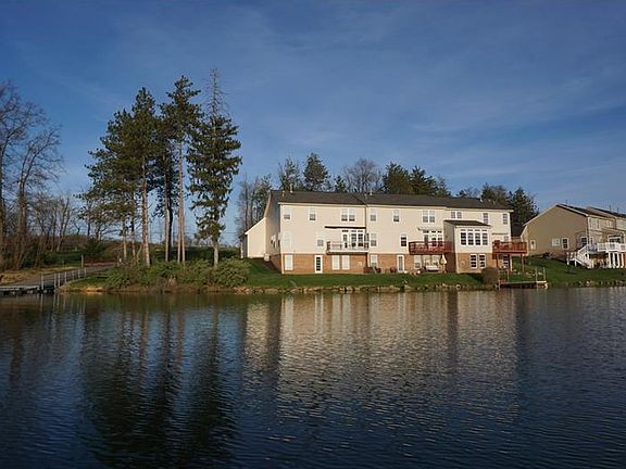 A dream come true! You can vacation all year long from your lakefront property that includes a shared dock right outside of your back door! The interior has an open floor plan that has been freshly painted throughout. A 3 sided gas log fireplace separates the living room and dining room which boasts cathedral ceilings. The eat-in kitchen has an island, recessed lights, under cabinet lighting, a pantry, and amazing views of the lake! The first floor owner's suite features a tray ceiling, a walk-in closet, and a deluxe bathroom with a Whirlpool tub and a separate shower. There is a convenient first floor laundry room with a utility tub. Upstairs is a loft area, 3 walk-in closets, a guest bath, and 2 additional bedrooms with ceiling fans and views of the lake. The large finished lower level includes recessed lighting, a large storage area, a study/exercise room with glass French doors, and an amazing game room with a walk-out to the lake! Relax outdoors on the 32 x 10 Omni stone patio or on the 16 foot deck. There is an integral garage along with an extra side pad for parking. Located on a peaceful cul-de-sac street in the Cherry Valley Lakeview Estates Community that offers a 40 acre lake, fishing, boating, walking trails, a clubhouse, 24/7 fitness center, a picnic area, a heated pool, and so much more! A convenient 20 minutes to the Airport and Robinson, 25 minutes to Moon, Bridgeville, and Peters.