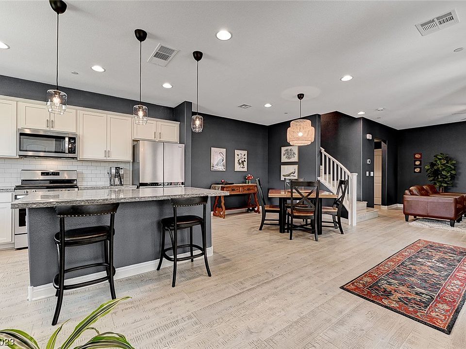PRICED TO SELL!! ONE OF A KIND DESIGNERS DREAM HOME - FULLY UPGRADED 3 STORY, 4 BED, 3.5 BATH, 2 LOFTS AND AN OVERSIZED ROOFTOP DECK IN THE HEART OF INSPIRADA - JUST 15 MIN FROM STRIP! THIS MAGNIFICENT PROPERTY HAS BEEN FULLY UPGRADED WITH THE FINEST QUALITY FINISHES. HOST FAMILY & FRIENDS IN YOUR BEAUTIFUL OPEN CONCEPT GOURMET KITCHEN WHICH INCLUDES ALL STAINLESS STEEL APPLIANCES, GRANITE COUNTERTOPS AND LVP THROUGHOUT. THE PRIMARY SUITE FEATURES A WALK IN CLOSET, A SOAKING TUB & SEPARATE SPA SHOWER. THE THIRD FLOOR WAS MEANT FOR ENTERTAINING - THE TOP FLOOR FEATURES ITS OWN PRIVATE BEDROOM, BATHROOM WITH SHOWER/TUB COMBO AND LOFT THAT OPENS TO A ROOFTOP DECK WITH MOUNTAIN AND STRIP VIEWS! ENJOY ALL THE AMAZING FEATURES INSPIRADA HAS TO OFFER FROM MULTIPLE PARKS, SCHOOLS, WALKING TRAILS, POOLS, SPLASH AREAS, BASKETBALL/TENNIS/VOLLEYBALL COURTS AS WELL AS BASEBALL/SOCCER FIELDS, DOG PARKS, WEEKLY FARMERS MARKETS AND SO MUCH MORE! YOU DON'T WANT TO MISS THIS GORGEOUS HOUSE.