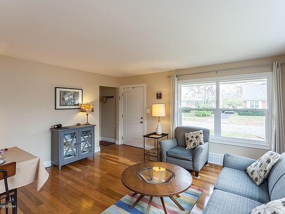 This beautifully updated, brick 4 bedroom, 1 bathroom Cape Cod is charming inside and out. It features a surprisingly open floor plan, hardwood floors, custom trim and updates and improvements throughout. From the moment you enter the front door you know this home is special. The living room and dining area have been opened up to the kitchen making the first floor bright and open. The entertaining kitchen has maple cabinetry, granite countertops, an under-mount, single-basin stainless sink, a designer faucet, breakfast bar, stainless appliances including an ultra-quiet Bosch dishwasher and a closet pantry. The hall bath has a gorgeous travertine tile floor, solid surface tub and shower, single vanity, dual flush commode and linen closet. The two first-floor bedrooms at the end of the hall are sizeable and each has an updated closet systems. In fact, the owner had custom closet systems installed throughout the house, making this home an organizer's dream! Upstairs are 2 large bright bedrooms with wood floors, high ceilings, oversized windows and an abundance of storage. The full, unfinished basement has the laundry, new glass block windows on all 5 basement windows, and loads of space for storage. Half of the basement has been readied for finishing. Step out the kitchen door and into the remarkable outdoor living space, with its generous 12x17 entertaining wood deck (2017), 13x13 paver patio, cute garden shed and fully-fenced landscaped yard. Other updates include new dimensional roof shingles and ridge vent (2017), replacement windows throughout, new front and rear storm doors, new hot water heater and sump pump. The seller is willing to leave all appliances with the property. This home is convenient to expressways and shopping and just a short walk to Farnsley Park and Bon Air library. For buyer assurance, the seller is offering a 1-year 210 Home Warranty.