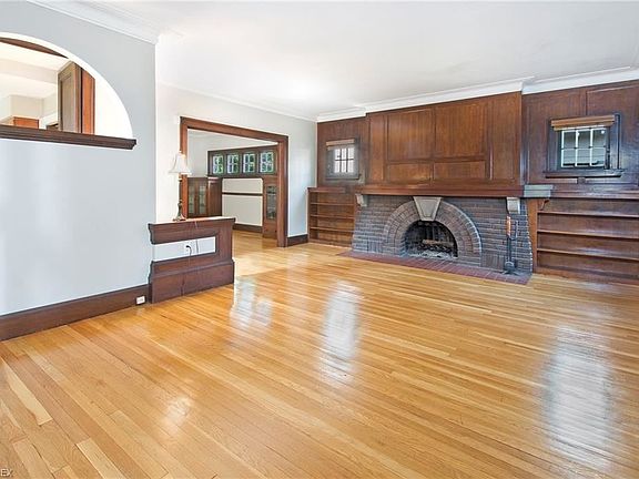 Welcome to this beautiful, 2113 square foot home located in Grant Deming's historic Forest Park. Living room with incredible curved brick bee-hive fireplace and gorgeous original natural woodwork including built-in bookcases. The curved motif carries into the staircase leading to the second floor. Spacious Dining room features built-in china cabinets, and stained glass doors opening into a cozy Sun room. The unusually large kitchen features updated stainless appliances, bamboo floors, and updated newer mid-century style cabinetry. Newly carpeted second floor has three large bedrooms, including the master with an enclosed sitting room. Large third floor is also newly carpeted and can serve as a bedroom or family space. The interior and exterior have been freshly painted, and there are energy efficient double pane windows. This architectural gem, which features three porches, is within walking distance to Cedar Lee, Cedar Fairmount, Coventry Village, and minutes to University Circle, UH and Cleveland Clinic.