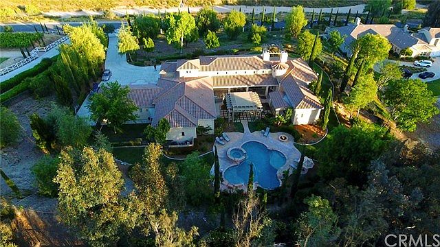 "STUNNING" Custom built home located in desirable Santiago Estates, on apx. 2 acres. Main house is 4bd. 3.5 Bath,with a 1bd, 1ba. Casita perfect for extended family or guests. Enter the automatic gates & up the knoll to the 4 car garage with a large parking area with room for an R.V. The grand entry welcomes you, on the left is the Formal living room and Dining area, and to the right is the East wing which features a Theater room,Laundry room, 2 Baths, and 3 Bedrooms, one of which is currently being used as an office with built-in wall unit with granite desktop. As you continue down the hall you will find the Library & 1/2 bath . Proceed forward to find a beautiful Great Room with 20' ceilings, grand fireplace, windows that line both sides of the room. The Gourmet Kitchen has beautiful cabinetry adorned with exquisite granite counters. Finishing the West wing you will find the Master retreat with fireplace ,The Master Bath has double sinks, walk in shower, & a large jet tub. All bedrooms have walk in closets. Custom window treatments & ceiling fans throughout. Just off of the main house the Casita opens to an entertainer's delight back yard, with Built-in barbecue, covered patio area and lovely rock pool with slide and Jacuzzi. Cozy up around the fire pit and embrace to peace and quiet of this perfectly located home, privacy of the country, yet just minutes away from almost anything you need, shopping, dining, freeway access, etc. Bring your DREAMS & WELCOME HOME.