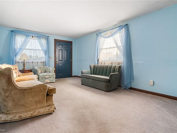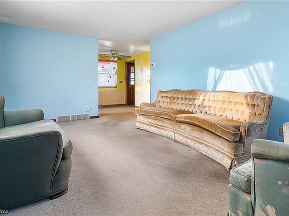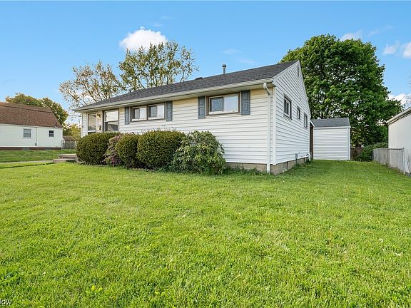 This fantastic ranch-style home boasts three cozy and carpeted bedrooms with ample closet space for all your storage needs. The spacious living room is perfect for hosting guests or spending quality time with loved ones. The eat-in kitchen has vinyl flooring and a refrigerator, stove, and microwave. The dining area is conveniently located off the kitchen, providing the perfect space for enjoying meals. The full bathroom has a tub/shower kit, tile flooring, a single vanity, and attractive laminate countertops. The full basement provides tons of storage space along with laundry hookups. Situated on a corner lot, this home offers plenty of outdoor space, including a covered patio where you can relax and unwind after a long day. Additionally, a two-car detached garage provides ample parking and storage space for your vehicles and other belongings. Don't miss your chance to see this wonderful home! Schedule your showing today! (SELLING AS IS)