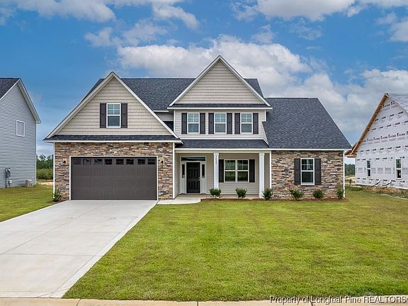 Georgetown Estates-Stone & Vinyl 2 Story with 5 Bedrooms, Master bedroom office/Sun room downstairs, 3.5 Bath, Open Foyer, Formal Dining Room, Open Kitchen with Island, Bar Seating, Dining Area & Pantry, Great Room with Electric Fireplace, SunRoom/Office, Master Downstairs with His/Hers Walk in Closets, Dual Vanity, Separate Shower & Garden Tub, 4 Guest Bedrooms Up with 2 Full Bath, Upstairs Computer Area, 5th Bedroom is Finished Bonus Room w/Closet, 2 Car Garage, Jack Britt Schools. "Built Strong by Armstrong"