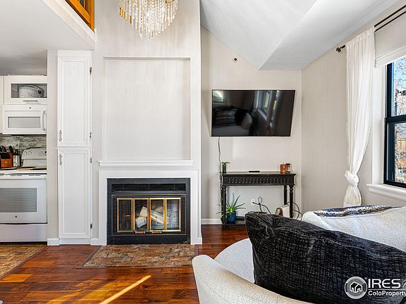 Super adorable remodeled Condo offering updated charm! Spacious vaulted ceiling and a loft to use as a private office or sleeping area.True wood burning fireplace for cozy evenings. Premium finishes of granite, marble and stone. Wood flooring. New paint throughout. Mini Split Heat/AC. Sip your morning coffee on your south facing balcony. Take the Skip to CU. Walk to Pearl Street, Ideal Market, North Boulder Rec Center, Beleza, N B Park &Trails. Covered parking # 24 & storage locker. Sweet Home!