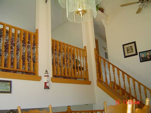 Pristine home in great neighborhood. 4 Bedrooms, 2 large Bathrooms (one with whirlpool tub), Central Air & 2 car garage. There are three walk-in closets. Beautiful hardwood floors in dining area. Oak railings and oak trim throughout. Free standing gas fireplace in family room gives cozy feel and saves on heat bill. Average gas bill is only $34.00 per month. Sliding glass doors from dining area lead to large, 18x26, entertaining/party deck plus an 8x8 addition for grill. The back yard is privacy fenced. There is also room to park your RV along side the garage. The shingles are new as of 2012.