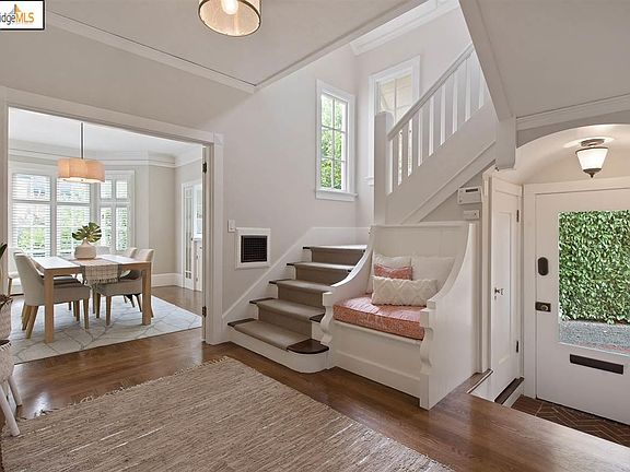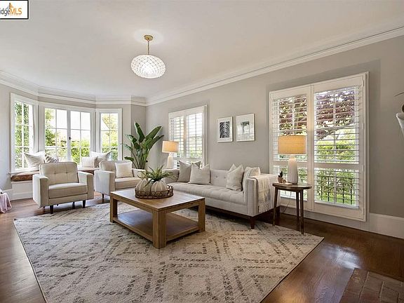 Architectural details abound in this elegant circa 1915 Harris Allen designed French Country home. Ideally located in the heart of The Uplands neighborhood, you are mere blocks to the best of both Elmwood and Rockridge shopping & dining districts. Near public transportation including Rockridge BART and AC Transit lines. Generously proportioned rooms, beautiful windows & light. Stunning original built-ins throughout. Generous Formal Living Room with wood-burning fireplace flanked by bookcases on each side, and cozy window with bench seat. Both bedrooms upstairs boast balconies. There is also a "sunroom" that would also work well as a nursery, den, office or guest room. The bedroom on main level can also easily be imagined as a den, guest room or spacious office. Tastefully updated light-filled kitchen with marble counters. Enclosed front garden & back patio offer ideal private entertaining, relaxing and play space. Across the street from neighborhood favorite Star Market. A true gem!