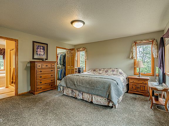 This is it! A beautiful custom home nestled among almost 180 acres. This property leaves nothing to be desired. Starting with the home, this 3360 sqft ranch style home has a unique but highly functional layout. As you approach the front door the wrap around deck greets you providing a wonderful place to enjoy the sights and sounds of your sprawling yet private homestead. From here the view can not be beat whether it's the western sunsets or the eastern sunrises this will be the vantage point to appreciate it all. When entering the property you have access to two living spaces uniquely separated by an elevated dining peninsula. The left side offers a large picture window and quiet place for reading or conversing. The right side has a short staircase leading to the warm open kitchen, with large center island, pantry and all the countertop space you will ever need. Also, off the kitchen is an additional access to the large deck and the first of two primary suites. To the other side and down the hall you will find a half bathroom, second primary bedroom and laundry room with access to the garage. Both primary bedrooms have full primary ensuites with whirlpool tubs, stand alone showers and dual sink vanities. The lower level of the home starts off by offering a comfortable family room featuring a dynamic rock fireplace and the perfect viewing place for movie nights. We also find 2 more bedrooms, an office space and another full bathroom. The mechanical room and additional storage under the stairs continues to impress with this home's ability to provide all the utility in a well thought out manner. As if on que, we point out the walkout to the covered patio where you have the opportunity to enjoy your sanctuary from ground level.