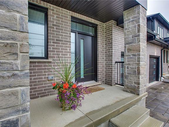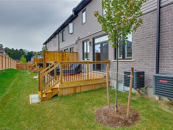 Step into elegance with this exquisitely maintained 1 ½-year-old 2-storey townhome, showcasing 3 spacious bedrooms and 3 beautifully designed bathrooms. Situated in the exclusive 22-home enclave in Victoria Flats, this property promises tranquility with no-thru traffic. Beyond its prime location, it offers the benefit of remarkably LOW CONDO FEES at just $135/month. As you enter, you're immediately greeted by airy 9-foot ceilings, rich engineered hardwood floors, and expansive oversized windows accentuated with elegant California shutters, all complemented by bright white finishes throughout. $10,000 was spent on custom window upgrades. The gourmet kitchen is a chef's dream, complete with a quartz countertop island seating for 4, a premium gas stove, sleek stainless steel appliances, undercabinet lighting, functional pot drawers, and a generous walk-in pantry. Upstairs, the roomy and comfortable primary bedroom offers a serene escape, featuring a sizable walk-in closet and an ensuite with twin sinks. A convenient second-floor laundry setup enhances the home's functionality with a side-by-side washer and dryer. Venture to the basement to discover a flexible space teeming with potential—an additional bedroom, a media room, or added storage. Enter directly from your garage, which boasts a garage door adorned with both decorative and functional glass windows. Outdoor enthusiasts will appreciate the 14x10 deck, ideal for relaxation, backed by a private fence. This gem is part of a well-managed vacant land condo community. Its prime location is just minutes off the 401, with Victoria Hospital a mere 10-minute drive away and numerous amenities nearby. Don't miss the chance to make this move-in ready home yours. Schedule a viewing today!