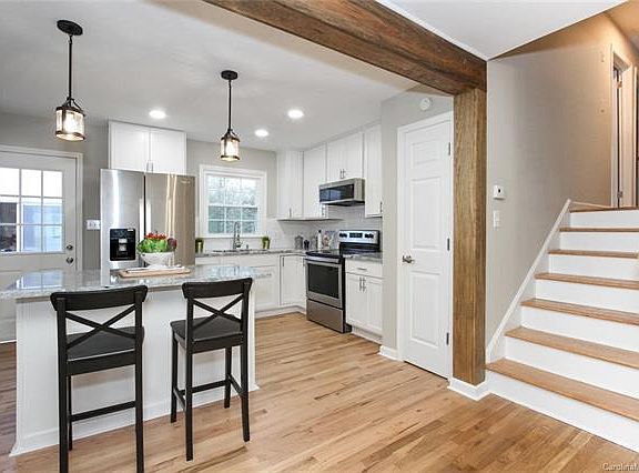 Classically renovated, bright and beautiful, split level with tons of natural light. This home is located in one of the areas most desirable, established neighborhoods, conveniently just minutes from Plaza Midwood, NoDa and Uptown. Modern painted brick exterior with great open/split bedroom floor plan that offers 4 bedrooms and 3 full baths. Living and dining rooms open to all new kitchen with white cabinets, stainless steel appliances, tile backsplash, and granite counter tops. Newly refinished floors, fully remodeled bathrooms, new roof, hvac and subpanel. All that and still more as we have a great back yard and a rarely found deluxe 2 car garage with plenty of room to add a workshop, home office or work out area. There's nothing left to do on this one so don't miss your chance to move into a wonderful home in an amazing area.