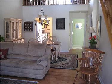Lovely entry level townhouse with open floor plan. Bright living room and dining room with cathedral ceiling and newer hardwoods. First floor master with walk-in closet and spacious bath. Fully equipped kitchen with eating area, pantry and access to 16x12 rear deck. Upper level includes nice sized loft as den/familyroom, the 2nd bedroom, full bath and an extra room for storage. Huge 39x26 lower level with walk out to yard - many possibilities! Washer and new dryer are included. Great community!