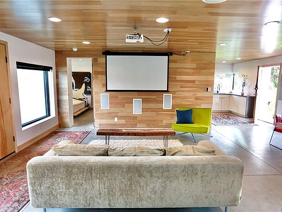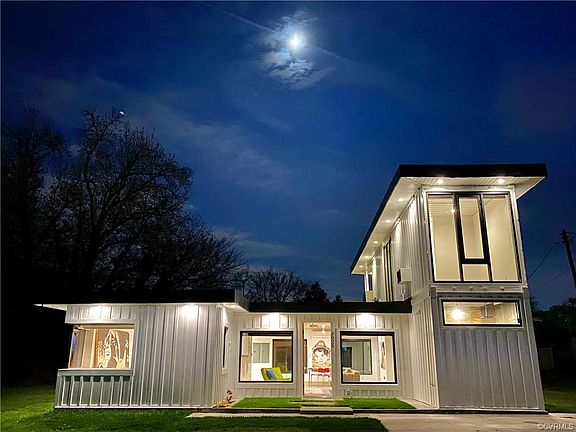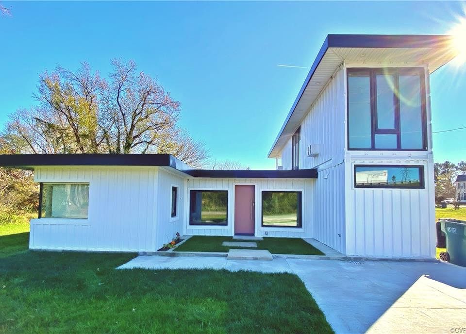 Virginia's first shipping container home is finally here! This original mid-century home, inspired by west coast and Scandinavian designs, has been stripped down to its shell and completely transformed. The courtyard entry welcomes you to the warm tones of birch throughout the house. Amazing natural light flows through the skylights and oversized wall to wall, cornered, floor to ceiling commercial glass featuring solar shades. Enjoy this minimalist design with luxury Viking and Dacor appliances in a beautiful gloss slab kitchen with quartz counters, in-wall surround sound and projector in a huge living space, body spray shower in the master suite, heated floor bathroom in the container, wall hung Duravit toilets, tankless water heater for continuous heat and efficient, and mini split units. Custom floating stairs lead you up to a loft-like second floor that includes another bedroom and a glass garage door to a covered patio. Huge windows give a panoramic view. in this space. The backyard features a large patio and deck with a hot tub, and a 200sqft finished studio.