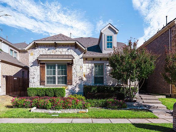 Built in 2015 by M-I Homes, this zero-lot-line residence is nestled in Plano's highly desirable Creeks of Timber Brook neighborhood, offering private walking trails, a peaceful fishing pond, scenic green spaces with benches, and plenty of amenities for entertaining. Step inside and discover 2,337 sqft of thoughtfully designed living space featuring 3 bedrooms, 3.5 baths, and a dedicated office space with French doors. The open-concept living area features a gas log fireplace and soaring windows for abundant natural light. The chef-inspired kitchen impresses with custom cabinetry, sleek countertops, a walk-in pantry, decorative wood vent hood, and GE Monogram stainless-steel appliances, including a 36" range top. Everyday conveniences include a mudroom bench, laundry room with roomy storage and built in cabinets, and a finished two-car garage offering additional storage. Upstairs, a loft flex space with a half bath connects to a private ensuite bedroom, ideal for guests or relaxation. The primary suite downstairs provides a serene retreat with 10 ceilings and a spa-inspired bathroom featuring an oversized walk-in shower. Outdoor space is appointed with landscaped garden beds, a private paver courtyard, sprinkler system, and a 6' privacy fence. Energy-efficient upgrades including Low-E windows, radiant barrier decking, a Rinnai tankless water heater, and Carrier 16 SEER HVAC ensure comfort and efficiency year-round. Come and call it home!