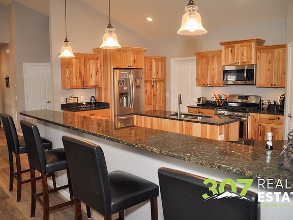 Very nice CUSTOM BRITTAIN built single level home located in one of Cody's finest sub divisions. This home boasts sky high vaulted ceilings,nine foot walls, spacious rooms, loaded master bath, granite counter tops, enormous kitchen, and oversized garage. All the landscaping is done and done well. Come check it out this beautiful three bedroom two bath home that is ready to go!