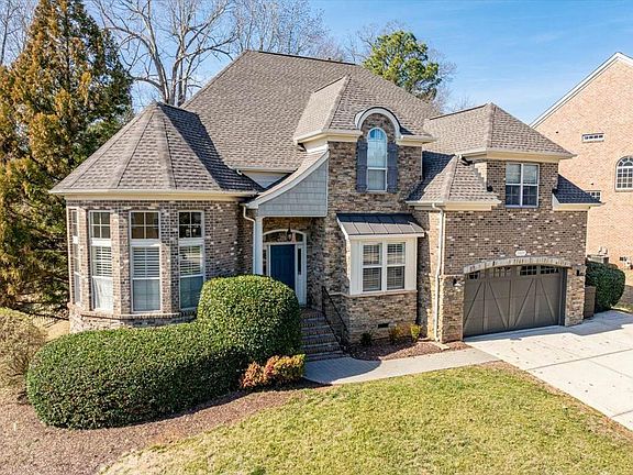 Newly refinished hardwoods throughout. Absolutely beautiful original owner 4-side low maintenance stone and brick home overlooking Wakefield GOLF COURSE 15th green (originally TPC owned). Minutes to your tee time, pool & tennis clubs, YMCA, great schools, new library, and all your favorite shopping. Open flowing floorplan, plantation shutters, fills with natural light. Stunning formal living room a wonderful space to greet neighbors or can be a formal study / music room. Elegant formal dining room can accommodate larger gatherings. Kitchen and breakfast room open to family room. Updated gourmet chef's kitchen with granite counter tops, gas cooktop, center island, Bosch SS appliances: dishwasher, microwave, and double ovens. 1st floor guest suite with adjacent full bath. Huge laundry / mudroom has plenty of cabinets and laundry sink. Spacious primary suite with trey ceiling and gas log fireplace. Beautiful primary bath has corner jetted tub, separate shower, large walk-in closet. Home office has Romeo & Juliet balcony overlooking foyer or can be used as another bedroom. 5th bedroom large enough for bonus room, gym, media room. Three season outdoor living with flagstone patio with fire pit, BBQ deck, large screened porch with vault. Fully fenced .24-acre lot. Home is connected to both Google Fiber & At&t high speed internet. Roof 2020, water heater 2025, new garage door 2024, HVAC 2022, New carpet 2025, Bath updates 2024, Kitchen remodel 2021.