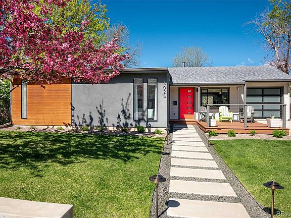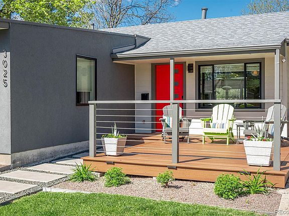 Welcome to this extraordinary mid-mod renovation in ideal University Hills. This home is a stand-out from the outside in. You're greeted by modern concrete pavers surrounded by professional landscaping accented with perfectly situated lighting for relaxing on the front deck. Inside, you'll be wowed by the open floor plan, warm, flowing wide-plank white oak floors and stunning architectural details. The wood beams, vaulted ceilings, and designer lighting draw you in. The natural sunlight filters in beautifully from the multitude of windows highlighting the crisp, freshly painted walls - perfect for the art enthusiast. The kitchen is spacious and sophisticated with recessed lighting, gas range, massive island and smart refrigerator, the stainless steel appliances complement the design swimmingly. Adjacent to the kitchen are the ample dining room and stunning family room adorned with windows and sliding glass doors that lead out to the custom-designed flagstone and concrete patio. The outdoor patio is perfected with a newly built stone grill area and bar featuring natural gas grill, wet bar, seating, and accent lighting. With a TV on the patio and plenty of room to entertain in the massive yard - you can host friends and family with style! The primary bedroom suite is peaceful and lovely with beamed ceilings, sliding doors to a private deck and swoon-worthy bath. The soaking tub, walk-in shower and double vanity with striking tile is serene! Coveted one-level living is at its best with 4 bedrooms, 3 full baths and designated office. Large storage shed for all of your outdoor gear and gardening supplies. Front deck and patio (2022) Newer water heater (2019), roof (2018), furnace (2016), AC (2016), professional landscaping and attention to detail and design from the current homeowner offer peace of mind, pride of ownership and a gorgeous, aesthetically pleasing sanctuary to start your next chapter. Grill, Outdoor TV, Indoor TV and sound bar in family room included.