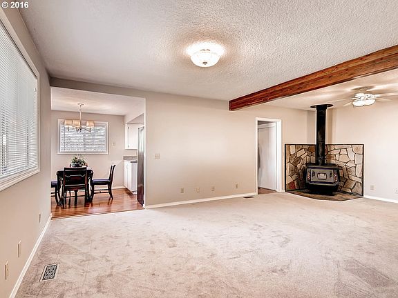 - Features: Beamed Ceilings, Ceiling Fan, Wallto Wall Carpet