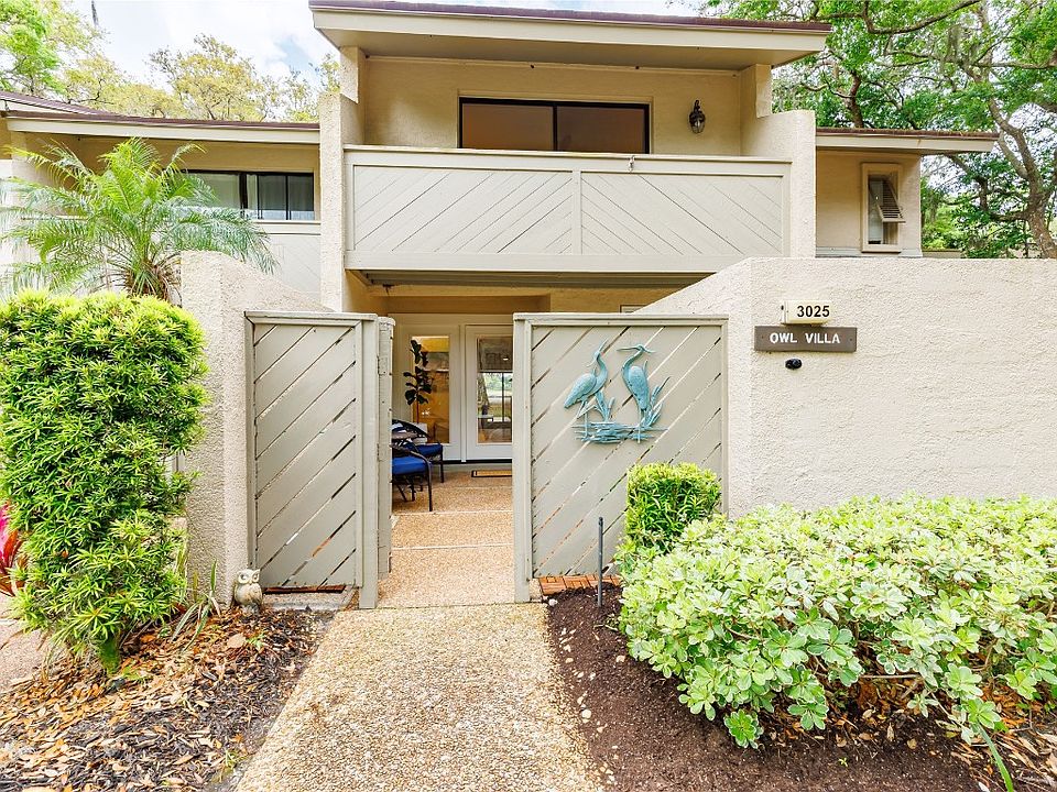 MULTIPLE OFFERS-HIGHEST AND BEST DUE BY FRIDAY 5/3 at 11am. Step into the luxury of this fully remodeled, townhouse-style condo, where modern sophistication is balanced with a relaxed vibe. Details like beautiful LVP flooring, louvered interior doors and shiplap enhance the space. The 2022 remodel updated the electrical, plumbing and HVAC systems and the original layout was transformed into an open-concept kitchen, dining/living space with raised ceilings and modern lighting. A sleek gourmet kitchen has quartz countertops, stainless steel appliances and open Baltic Birch shelving. Two ensuite bedrooms, each with a balcony, offer stylish tranquility. Sold fully furnished, both suites have king beds, with a sleeper sofa downstairs. Enjoy spectacular views of the marsh, golf course, and river while you relax on the patio, listening to the peaceful sounds of the marsh and local birds. Enjoy easy access to pools, parks, tennis, boat launch, pickleball courts, the Oaks Community Center and more.