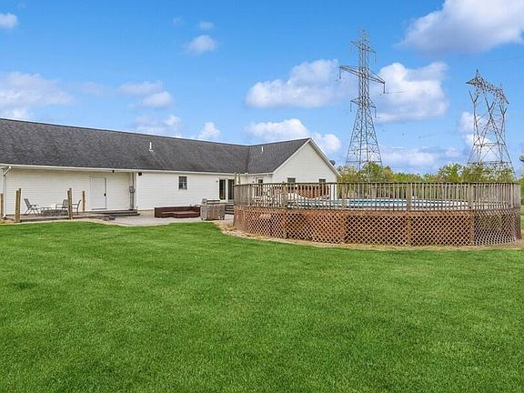 This one checks all the boxes! Live, Work and Play. Main level living on 5 acres with a pole barn, pond, and a pool. Large ranch style living space flows seamlessly from kitchen to dining to living. Oversized primary bedroom with ensuite bath. Main floor laundry. Partially finished basement set up for entertaining. Slider off of dining for easy access to backyard with paver patio and above ground pool with deck surround. Electrical for hot tub already in place. Gas grill and firepit. Pond has already been stocked for fishing. All appliances stay. 64x34 pole barn features a shop with office and a 3-4 bay garage, both heat and a/c, expansive shelving, hook up for air compressor and a 9x62 leanto for extra outside storage. Water heater 5 years old, furnace is 2 years old. Zoned res/a