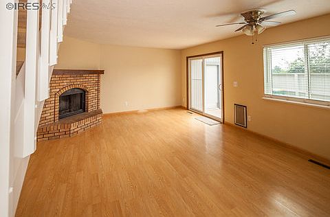 Townhouse with great views of Horsetooth rock and more! Easy living layout with a newly updated bathroom upstairs, both bedrooms upstairs and open living room layout downstairs next to the kitchen. This well kept town-home is at the end of the building, separated from the neighbors and next to a grassy green area. Great for pets! This quaint, private yard with a direct view of Horsetooth rock will have you excited to garden in the raised bed in the warm months and watching the sunset year round.