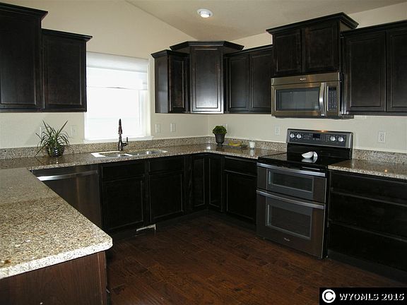 This nearly new home has it all! Impeccably clean and well kept home. Finished basement has 9' ceilings and walks out into a large landscaped & fenced yard with built-in firepit. Vaulted ceilings, hardwood floors, large kitchen, central air, two decks & high end window coverings! Gorgeous views of Casper Mountain. No hassle, move in ready - turn key home. 13 month home warranty included. For 24 hour information dial 1-800-359-0823 and enter code 1830.