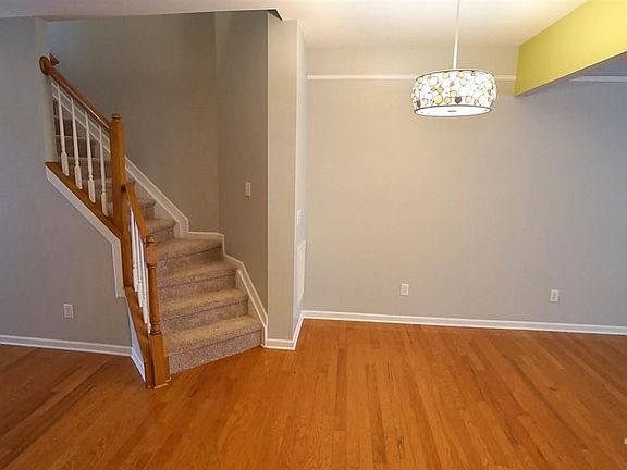 Immaculate, move-in ready townhome w/garage in popular Bedford! Open & spacious floor plan! Convenient 2nd fl. laundry rm. Beautiful hardwood floors throughout main level. Kitchen has walk-in pantry, breakfast bar & tons of cabinet space. Brand new stainless refrigerator & dishwasher. Gas log fireplace in family rm. Huge master suite boasts vaulted ceiling, walk-in closet, dual sink vanity & garden tub. Shelving in garage for storage. New water heater. Private patio w/wooded buffer. Fantastic amenities!