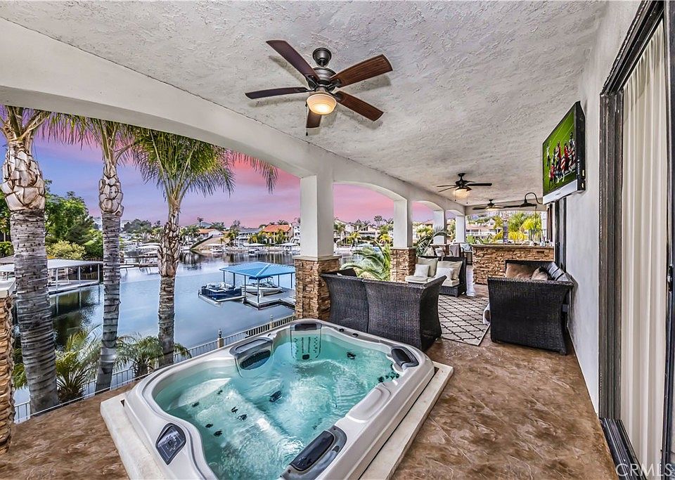 Welcome to the Exclusive Community of Canyon Lake where your Quintessential Waterfront Home Awaits. Boasting Panoramic Lakefront Views, Private Covered Boat Dock, 3-Car Garage, Oversized Master Suite, Indoor/Outdoor Chef's Kitchens, and an Entertainment-Ready Terrace, this Home is Truly One-of-a-Kind! It is picturesquely nestled in the highly-coveted guard gated city of Canyon Lake, "The Crown Jewel of Riverside County,” as well as centrally located between Orange County, Los Angeles County, and San Diego County. Elevate your lifestyle with exclusive access to an array of amenities, such as an 18-hole golf course, clubhouse, equestrian center, multiple beaches, tennis courts, playgrounds, lakefront swimming pool & lodge, dog parks, spectacular year-round events and so much more. Offering a feast for the senses, the home welcomes with towering tropical palm trees, lush landscaping, covered pergola, and front Dutch door. Explore the updated interior to discover an openly flowing floor plan, tons of natural light, hardwood & travertine flooring, spacious formal dining room, and a large living room w/ woodburning onyx fireplace. The huge upgraded chef's kitchen features stainless-steel appliances, granite countertops, pantry, center island and double wall ovens. Let the cares of the day melt away in the oversized primary bedroom, which includes vaulted ceilings, dual closets, sliding glass doors to the outdoors space, serene views, and an attached en suite bath with a standalone soaking tub, frameless glass-enclosed shower, and dual sink vanities. Venture outdoors to find a party-perfect space with a covered patio, breathtaking lake views, a private boat dock w/hydro-lift, and a full outdoor kitchen with Bull BBQ, accessories, and an iced beverage center. You are going to love living in Canyon Lake with all its amenities and quick access to shopping, restaurants, wineries, entertainment, award-winning schools, and so much more! Call now for your private showing!