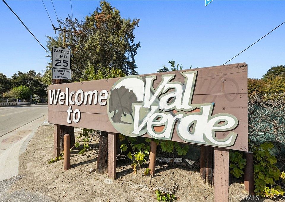 There is a glass slider off of the dining room, leading to a covered, concrete patio and backyard where you can enjoy a summer evening outside, have a morning coffee, or tend to a home-grown garden. The entire property is fenced, with a lovely front yard, beautiful rose bushes and newly planted palms. The two-car garage and driveway allow for ample parking, including recreational vehicles. The community of Val Verde offers a recreation center with pool and a locally owned corner store.