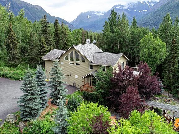 Paradise valley with just under 3,000 sq ft of living space and OVER 3,000 sq ft of garage/ shop on almost an acre! Quiet secluded subdivision with unmatched views of Eagle River Valley and the Chugach Range. West facing Trex deck w/ amazing Southern exposure. Gourmet kitchen with Wolf gas range, SS appliances, hickory flooring, custom cabinets and granite countertops.