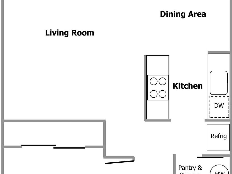 - Included: Dishwasher, Garbage Disposal, Refrigerator