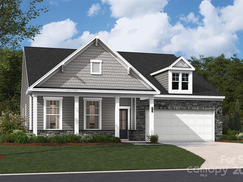 Welcome to 2,689 square feet of thoughtfully designed 1.5-story living in the Easton home, perfectly set in a lively 55+ community. This inviting plan offers 4 spacious bedrooms, 3 full baths, and a flexible pocket office. The main-level primary suite provides a serene retreat, while the gourmet kitchen flows seamlessly into the dining and living areas—ideal for entertaining or relaxed evenings. Upstairs, a generous bonus room plus a full bedroom and bath create the perfect guest space. Enjoy peaceful mornings on the screened porch overlooking a manicured lawn or unwind on the welcoming front porch. Residents enjoy a clubhouse, pool, pickleball courts, fitness center, scenic trails, and included lawn care for easy living near Sun Valley Commons shopping and dining.