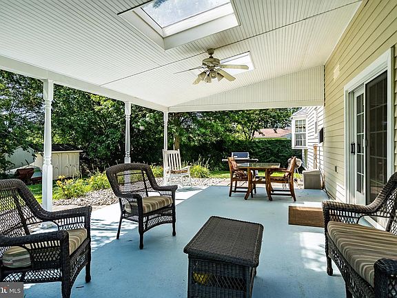 Search no more for that beautiful 2 story Colonial home on a beautiful large corner lot literally within walking distance to Paul Fly Elementary school and playgrounds. Fantastic neighborhood and location make this one worth the look. Totally maintained and upgraded home has a lot to offer you if you are looking for your forever home. The exterior roof was totally redone in 2005 along with the back porch vinyl soffits and decorative posts. This huge rear patio 20 x 12 will give you years of outdoor enjoyment with a cathedral ceiling and 2 skylights, a porch fan, and a large shed in the rear with electricity. Covered front porch entry to the foyer with an upgraded new front door in 2020, oak tread stairs and handrails that opens into the formal living room with oak hardwood flooring, crown molding, and 6 inch baseboard trim and a Triple bay window. The upgraded and remodeled kitchen has a formal eating dining area with another Bay window, the same great hardwood floors, Kraftsmaid 42 raised panel cabinets with soft close drawers, many base cabinets with slide out drawers, drop in stainless sink with upgraded disposal, and a Corian countertop with coordinating stone backsplash. Stainless steel appliances, Kenmore Elite 5 Burner Dual Fuel Stove with two ovens, Bosch Dishwasher and French Door refrigerator with ice maker and lower freezer. There is a moveable island with pendant lights, recessed lights, and under cabinet lighting as well. The inviting family room has a wood burning brick fireplace, ceiling fan with remote control and a newer Anderson sliding door to the rear covered patio and also an access door to the 2 car garage. Convenient 1st floor powder room with granite flooring, newer custom vanity with a glass vessel sink and new fixtures. The expansive main bedroom has a custom walk in closet with organized shelving and plenty of room for hanging clothes, carpets over oak hardwood floors and included an electric fireplace. Fabulous remodeled ensuite bathroom with Walk in Shower, frameless glass shower door, double sinks and vanity, marble flooring and great linen closet with lots of storage. 3 additional bedrooms and a remodeled hall bath with double sinks and vanity, and a newer shower with tub ensemble. A full basement with an upgraded electric panel with a Generator Transfer switch to the propane fueled generator, convenient during any power outage. A new gas fired hot water heater in 2020, there is a high efficiency gas fired hydronic heating system, (no oil here) along with an 18 SEER Carrier 2 stage central air conditioning. There are 3 heating zones, the whole house is wired for Voice, Data and Video, a newer concrete entrance path, river stone flower beds and recently refinished hardwood floors in the living room and kitchen, dining areas. There are replacement double hung vinyl windows throughout many rooms in the house, 6 ceiling fans, dual garage door openers, and 2 ceiling storage rack lifts to remain in the garage, along with the fire bricks for the fireplace. This lovely home is covered with a one year HSA home warranty for the new homeowners at time of closing for peace of mind. A beautifully maintained home ready for you to start your new life, make sure to see it today as its really worth the look.