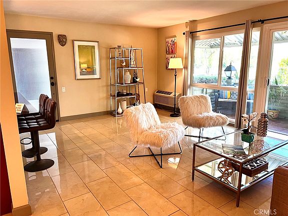 Welcome home to this stylishly remodeled, ground floor Casa Del Mar floor plan in a private, secluded, tranquil and serene location. Walk around the building to your front door "WITHOUT STAIRS", OR, take the steps down from the second level. As you enter through the custom single-lite glass door, you will immediately notice the warmth that the seller has created in this lovely home. This property has been meticulously maintained and cared for, with a remodeled kitchen that is open to the main living area and a chef’s delight. The kitchen has been appointed with newer cabinetry, soft close drawers, stainless steel appliances and quartz countertops with extensive cooking space and a subway tile backsplash that adds that special "pop" when you walk through the front door. The main owners suite is spacious, can accommodate your king size bed, includes a walk-in closet and a beautifully remodeled bathroom with a large walk-in shower. Other amenities include newer dual-pane windows and sliders, porcelain tile throughout the main living area, newer carpet in both bedrooms, an updated guest bathroom and inside washer/dryer hookups. The secluded covered patio is the perfect place to relax and unwind, it overlooks the tennis courts and has a nice view of the Saddleback Mountains. This home has a warm, quiet, secluded and private feel, providing a peaceful atmosphere for your enjoyment. This property is close to the community center, tennis club, both golf courses and shopping. Easy access to the golf cart path that will lead you to Clubhouse 7, the Village Greens pro-shop along with Restaurant 19 and the Professional 27 Hole Golf Course.