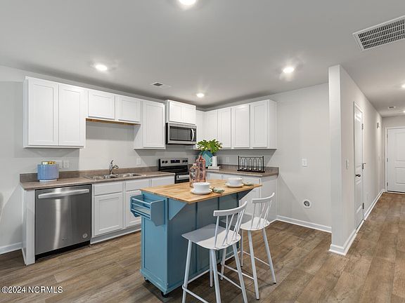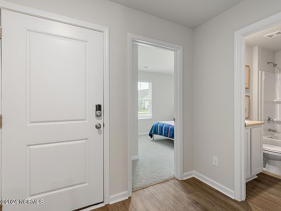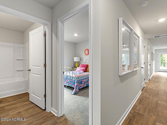 Waterside in the beautiful coastal town of Surf City presents the Sullivan! The Sullivan is a 3 bedroom, 2 bathroom home with a 1 car garage designed for efficiency and comfort. Walking in through the foyer, you'll find 2 front bedrooms with a shared bathroom in between. The kitchen comes with stainless steal appliances including a smooth top range, microwave and dishwasher. The primary suite being at the back of the home features a walk in shower, walk in closet, and has a single vanity. Waterside Amenities include a swimming pool, clubhouse, fitness room, firepit, play ground, multi-sport court, sand volleyball and walking trails throughout the community. The white sand beaches and the beautiful bluish green waters of the Atlantic Ocean offer a perfect combination of adventure and relaxation. An almost year around mild climate means you can enjoy the warm salty air and all that the area offers year-round. Your new home at Waterside is less than a mile to the new high-rise bridge with a pedestrian lane where you will have sweeping views of the Atlantic when you are at it's crest. Waterside is an easy drive to Wilmington and Marine Corps Base Camp Lejeune and all of the conveniences are nearby. Home Is Connected® Smart Home Technology is included in your new home and comes with an industry-leading suite of smart home products including touchscreen interface, video doorbell, front door light, z-wave t-stat, & door lock all controlled by included Alexa Pop and smartphone app with voice! The photos you see here are for illustration purposes only, interior and exterior features, options, colors and selections will vary from the homes as built.