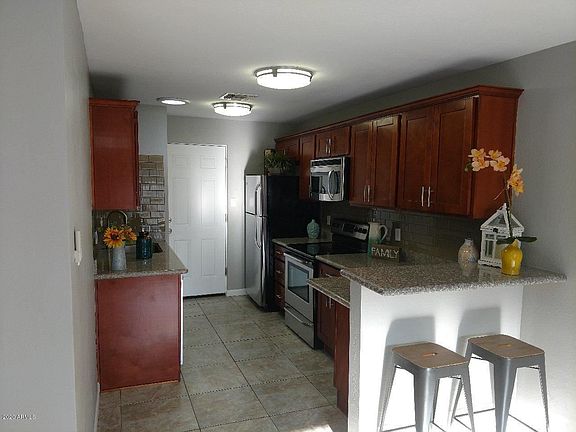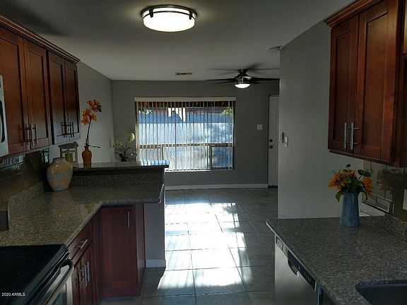 This totally remodeled Unit located in a 4-plex building has been all redone with no expense spared. Complex is gated w/a large courtyard area. Unit comes w/ stainless appliances, granite counters and W/D inside the unit; Custom tiled shower, closet organizers installed and remote controlled stainless ceiling fans; No carpet, as entire unit has tile. There is a large tiled private patio area and an area of synthetic grass. The unit also has a monitored alarm paid for by the owner. Unit is located near 202 freeway, 51 freeway and you can be in south Scottsdale in 10 minutes by streets or downtown Phoenix in 10 minutes by streets & close to airport. THE ALARM IS ON AND ACTIVATED.