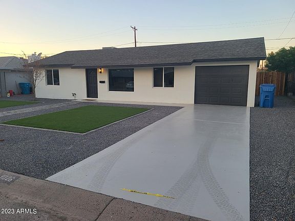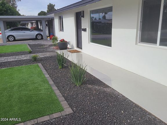 Stunning remodelled home in a very desirable location!! Close to downtown, Biltmore, Arcadia and just minutes from Sky Harbor Airport. The details in this remodel are remarkable!! Smooth textured interior walls and smooth textured exterior stucco. Bathroom boasts fully tiled shower, new vanity, toilet and fixtures. Kitchen boasts quartz countertops with waterfall, breakfast bar, subway tiled backsplash, new black switches, outlets, large sink and fixtures. The eye catching custom living room accent wall with electric fireplace and mantle adds style, charm and ambiance. New flooring, can lighting, fans and baseboards throughout. New roof, newly enclosed garage, breeze way and laundry room. Too much to list, this turnkey home is a MUST SEE!