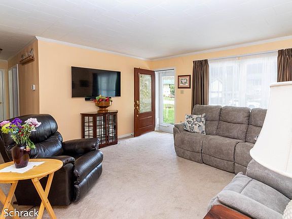 Great ranch home on northern end of town within walking distance of schools. Small stream at rear of mostly level lot. Off-street parking and 1 car attached garage. Peaceful rear yard can be observed from elevated, wraparound deck off kitchen. House features custom kitchen with oak cabinets and attached dining room has wooden wainscoting. Full basement has storage areas with potential for workshop, other rooms. Nice ranch homes in this location don't last long, call today!