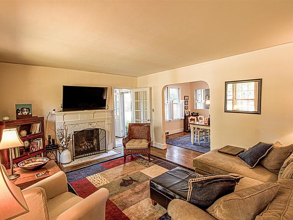 This home is a winner! So much attention to detail with beautiful hardwood floors, updated kitchen w/ solid surface counters, SS appliances, tiled backsplash, pantry and farmhouse sink! Cute corner window seating for the perfect morning coffee. Picture molding thruout with desirable fresh paint colors and a new roof! You will be delighted with the updated baths and woodwork is in great condition! The backyard is delightful with an over-sized decking (partially covered) and detailed landscaping. One car garage has electricity and separate storage in back. Awesome property!