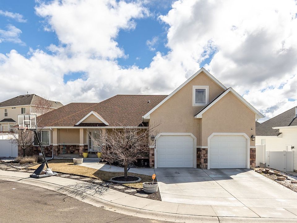 Conveniently located near schools & shopping, this home offers the perfect space for everyone! The large, open main living area is the perfect gathering space and offers new laminate flooring, a large kitchen & so much more! The primary bedroom is spacious with a walk-in closet and the bathroom offers double vanities with a jetted tub right in the middle! The split bedroom floorplan is ideal and offers 2 additional bedrooms on the main level. Each of these bedrooms have new carpet & are a great size and the guest bath also has a double vanity with separate shower area - talk about convenience! Upstairs, you'll find Bedroom #4 with a large walk-in closet area (new carpet upstairs as well!). There's a great Family Room that would be perfect for movie nights, games, a home office OR turn it into Bedroom #5?! You'll also find another full bathroom upstairs! The laundry/mud room is huge & offers plenty of counter space and storage options. The backyard was designed for convenience: there's a large cement patio with a pergola that would be the perfect spot to grill this summer! There's also a low-maintenance turf area, lawn (sprinkler/drip system), firepit area, dog run & storage shed!