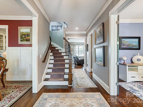 Beautiful semi-custom 4 bed/3.5 bath home plus 2nd living space above garage w/large bonus rm & half bath. This charming home offers tons of architectural features throughout. The rocking chair front porch w/gas lanterns greets you & leads you inside to find beautiful hardwood floors, a curved staircase & gorgeous moldings. The first floor offers a private office w/French doors, dining rm w/craftsman molding, large living rm w/built ins & lots of windows. The kitchen has an oversized island, granite counters & dual ovens overlooking a breakfast area, butler pantry + pantry. Upstairs has a loft, primary bedrm w/balcony, an updated bathrm w/dual vanities, large shower, separate tub & dual closets. The 3rd fl has a bonus rm plus bedrm & full bath. Need more space, no problem, wander through the yard to the detached garage w/ upstairs large finished living space w/half bath. Great community w/clubhouse, outdoor pool, tennis, playground & more. Hurry, you don't want to miss this one.