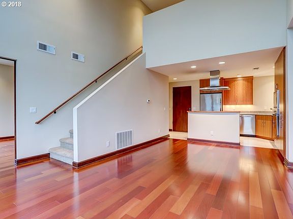 Commercial quality construction that backs to open space. Gourmet kitchen, dramatic high ceilings, cherry cabinets, hardwood floors, slab granite counters, travertine bath floors, washer/dryer, Decor Stainless Appliances, Amana Refrigerator. Luxury living in Forest Heights with well-maintained trails, parks, and neighborhood amenities. Secured building with two dedicated parking spaces, access elevator and elegant common areas.