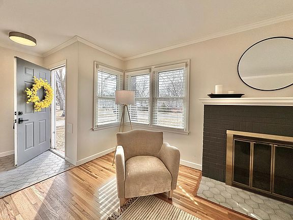 This beautifully renovated one-level home sits on a spacious 1/4 acre corner lot in highly sought after pocket of Golden Valley. Seamlessly blending modern finishes with classic charm; gorgeous hardwood floors were just refinished. The spacious living room is anchored by a wood-burning fireplace, and flows into a dining area just off the kitchen; perfect for entertaining. The fully updated kitchen features stainless steel appliances, custom cabinetry, quartz countertops, custom tile backsplash. All 3 bedrooms on the main level are generously sized, and there is a spa-like renovated bathroom on the main level as well. The basement has a large and open rec room with an awesome bar setup. An additional renovated 3/4 bathroom, spacious and clean laundry room, and an additional storage room (which could easily be a 4th bedroom). Off the kitchen, there is a peaceful screened in porch overlooking the neighborhood. Across the street are homes worth 750k+. Roof and furnace are new in 2025, windows updated, vinyl siding, private and spacious yard... just move in and enjoy!