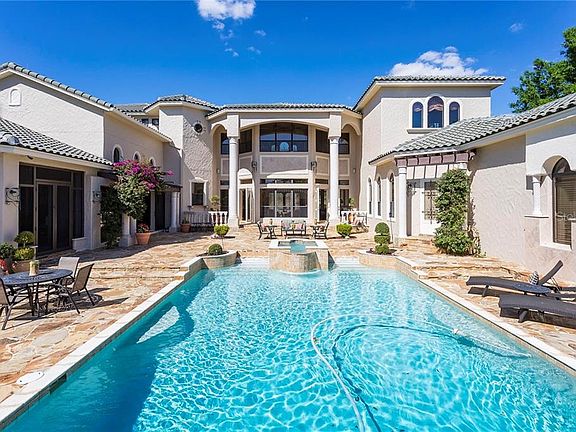 Located within the gated community of Marbella, with 40 ft. of lake frontage on Lake Down and boat dock with a private boat lift, this custom pool home with superior finishes and materials used throughout is nothing short of exceptional; stone, wood, iron, granite, travertine and master craftsmanship shine through in every detail. Custom wrought iron doors open to a 2-story foyer highlighted by a wall of windows overlooking the backyard. The dining area with over-sized wet bar greets you on the right and a relaxing, but glamorous, formal living room to the left. The gourmet kitchen with custom cabinetry, six burner gas cooktop, and dual side-by-side refrigerators open to the great room with cathedral ceilings, beam millwork, fireplace, and large glass doors opening to the outdoor entertainment areas. The master bedroom boasts volume ceilings with exposed beams, sitting area, walk-in closet, newly renovated bathroom with soaking tub, walk-in shower with multiple jets. Complete with 4 en-suite bedrooms, craft room, media room, office and 3 car garage this estate provides space for the largest of families. Designed for indoor/outdoor living around the poolside area with rock waterfall, slide, hot tub, pool house, summer kitchen, volleyball court, and serene garden oasis. This home is ideal of creating a lifetime of memories with the ones you love. Situated on 2.17 acres, this stunningly designed residence offers the privacy everyone dreams about. (One or more photos have been virtually staged).