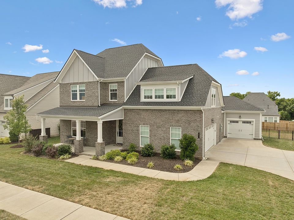 Step into this practically brand-new Phillips Builders Fleetwood—just 3 years old—where thoughtful design meets modern elegance. This open floor plan showcases incredible designer finishes, including a pot filler, custom Roman shades, and a cozy gas fireplace as the living room centerpiece. With 2 bedrooms on the main level plus a flex room and 5 bedrooms total, the home’s first floor flows in a seamless circular layout, maximizing space and creating an effortless connection between living, dining, and kitchen areas—perfect for both entertaining and everyday life. Upstairs, a spacious bonus room, filled with natural light, offers endless possibilities for a playroom, home gym, office, or more.