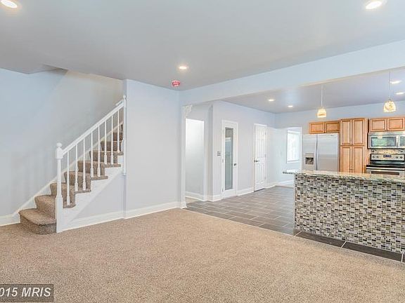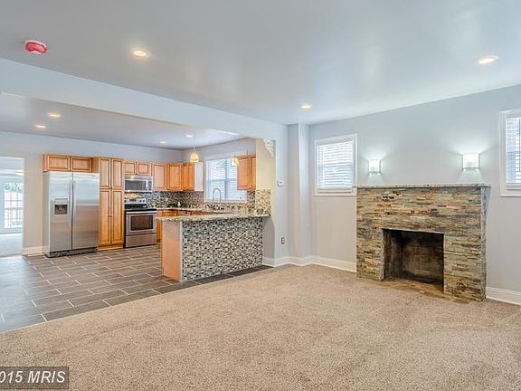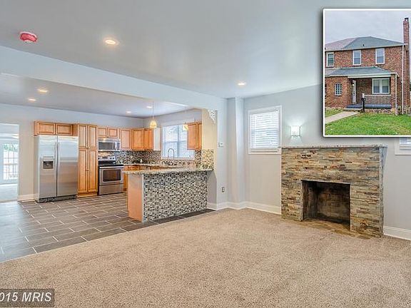 SEMI-DETACHED ROWHOME WITH DETACHED GARAGE! OVER 1700 SF Beautifully remodeled 4 bed, 2.5 bath home, featuring a gourmet kit w/ exotic marble counters, ss appliances, & tile backsplash, spacious LR w/ wood burning fireplace, main lvl half bath, upper level w/ 3 beds & 1 full bath, finished basement w/ rec room & full bath, large rear deck & detached garage! New roof, HVAC, & water heater!