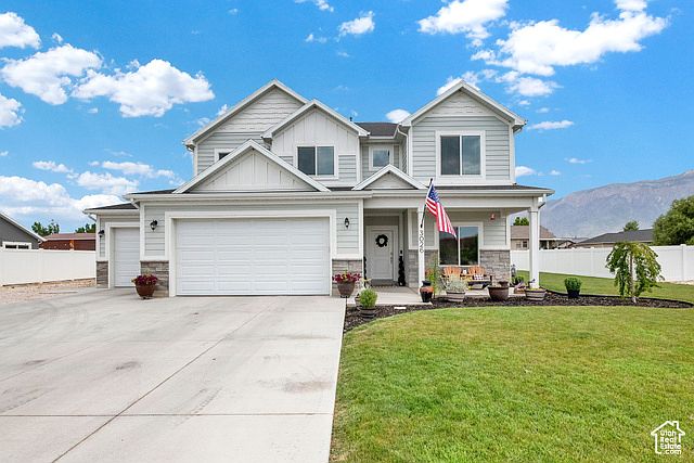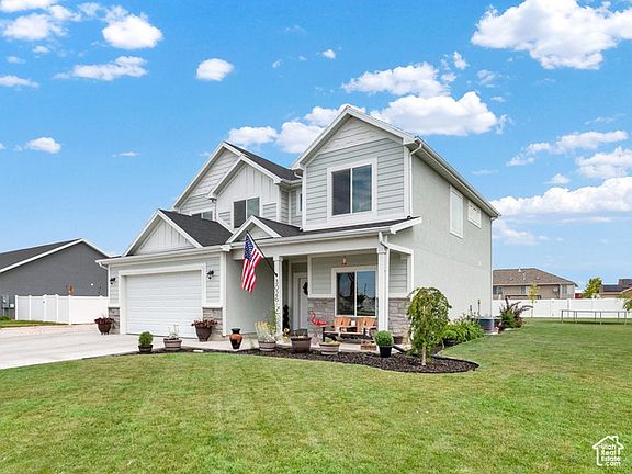 FANTASTIC home tucked away in an AMAZING Farr West neighborhood right across the street from the new elementary school. This OPEN and spacious floor plan with high ceilings will have you in awe the minute you walk through the door. The LARGE kitchen has tons of counter space, floor to ceiling cabinets, quartz countertops and large pantry. You will love the BIG open family room with tons of natural light. Walk out onto the large patio perfect for entertaining, or enjoying the big yard, and mountain views. The patio has electrical and gas stubbed for a future fire pit. There is also gas and electrical stubbed into the rv pad for a future shop. Upstairs, the master suite is GORGEOUS with double sinks, separate tub, shower and HUGE walk-in closet. The three large additional bedrooms and a loft upstairs give this home plenty of space. This home has an oversized garage with extra depth. It will make anyone jealous. It has a large PRIVATE yard that is beautifully landscaped, smart sprinkler system and provides an extra big RV pad on the side. This home has so many extras and has been well cared for it will not disappoint. Don't miss this one!
