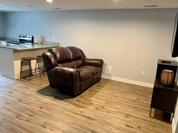 Fully Furnished 2 Bedroom, 1 Bath Basement Apartment. Spacious two-bedroom apartment with queen beds. Large bathroom with granite countertops and tub/shower combo. Open kitchen, dining, and living room. Basic appliances with a dishwasher. Large Laundry Room. Free washer and dryer in unit. Central Air and Heating. -Steep stairs. -Parking and Entrance in the back of the house -No shared spaces with upstairs tenants Owner pays all utilities. Pet Deposit is Non-Refundable. Month to Month Lease or Yearly Lease Available. No Smoking (of any kind) allowed inside the building.